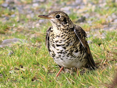 A pre-dawn arrival at Uyeasound in the unlikely event the Siberian Thrush had stayed-over but there was unfortunately no sign of it. Soon after birders arrived from mainland Shetland everyone spread out and an Olive-backed Pipit was soon found. We decided to leave shortly afterwards and resume our usual circuit starting at Skaw. Robbie had the same idea and whilst talking to him I noticed a large plump Thrush flying towards us being pursued by a Hooded Crow. On raising my bins I was soon shouting ''White's Thrush!!'' and everyone was soon watching it being chased as it circled once over the farm and then far into the distance with JFC seeing it being knocked down by the Hooded Crow over a distant ridge of Saxa Vord. We could hardly believe our luck, and whilst still celebrating our dream find, it suddenly appeared out of nowhere and zoomed past us now hotly pursued by a Merlin! It landed in the farm compound affording superb views on the ground! We quickly text out the news and the crowd began to gather as the White's Thrush sat recuperating. It soon perked up and started to perform probably even more pleased than us (if that was possible) that it had survived the attention of the predators! We moved onto Norwick where whilst taking a call from Mark C kindly congratulating us (and well done him on finding a Black-throated Thrush in the last few days) I noticed an Osprey heading our way. We also saw a Lesser Whitethroat and a couple of Goldcrests. Burrafirth produced a flock of 6 Common Redpolls, a Siberian Chiffchaff, a Chiffchaff and a Yellow-browed Warbler. Haroldswick added a Song Thrush, 5 Redwing, a Yellow-browed Warbler, another Siberian Chiffchaff, a Blackcap and a Goldcrest. Setters Hill was quiet with just a Blackcap, a Chiffchaff and 2 Goldcrest, Houlland added just a Goldcrest and Saxa Vord another Common Redpoll.