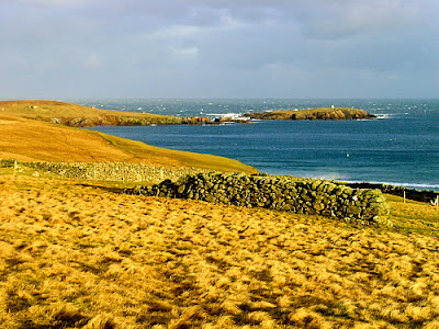 The weather was far better than forecast albeit the wind increased during the day and the first wintry hailstorm arrived just before dark. Sea-watching seemed worth a try from Lamba Ness and 90 minutes from 9am produced a large northerly movement of Fulmars including 16 blue Fulmars, several hundred Gannets, 3 Glaucous Gulls (ad & 2 juvs), a few Kittiwakes and a couple of Guillemots and a close encounter with an Otter! Another 3 juv Glaucous Gulls were patrolling the clifftops and the Pink-footed Goose was still with the Greylags. A quick check of Skaw revealed just a single juv Glaucous Gull and the 4 Tundra Bean Geese were still present at Norwick. Burrafirth again produced the bird of the day as on seeing a bird flying erratically low over the marram grass I lifted my bins anticipating seeing a Snipe... Little Auk - brilliant! It careered towards the beach and flew out over the sea and around the cliff. We dashed to view along the cliffs but couldn't see it on the sea so perhaps it kept going, but nonetheless, a very memorable encounter! A single juv Glaucous Gull was on the beach and as we returned a juvenile Peregrine flew towards Loch of Cliff.