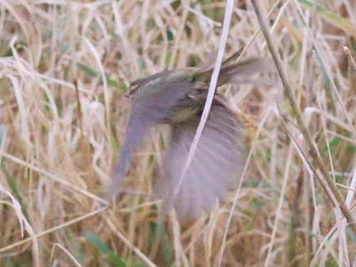 Skaw produced the Eider, 3 Long-tailed Ducks, a Glaucous Gull, 25 Fieldfares, 15 Redwings, a Black Redstart, a Common Chiffchaff and a Common Redpoll. I saw a Sparrowhawk and a Blue Tit on my return along Holsens road. NorthDale held 10 Redwings and there was a Merlin at Ungirsta mires and a male Peregrine chasing Ravens at the Shore Station. The Grey Plover had been joined by a Dunlin on Haroldswick beach. In already fading light in overcast and misty conditions I found an interesting bedraggled Phyllosc in Norwick. Although it was resolutely silent the combination of its apricot-buff undertail-coverts, broad supercilium and bill shape - seen in that order - convinced me it was a Radde's Warbler despite the late date. I managed a few images but bear in mind they were all obtained at the highest ISO. Hopefully it will still be present in the morning...