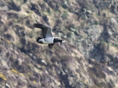 There was still a cold wind today but the cloud cleared around midday making for a sunny afternoon. A visit to Skaw produced a Merlin, a Bonxie, 2 Woodpigeons, 3 Redwings and our first Wheatear of the year. A walk around Norwick added my first Barnacle Goose of the year, a Merlin, 2 Puffins, 2 Woodpigeons, 6 Redwings, a singing Goldcrest and a Great Tit. Burrafirth was still playing host to a few Gulls including a 2cy Glaucous Gull.