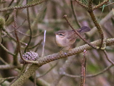 The overcast dank conditions soon cleared into a nice bright day until heavy cloud rolled-in again around mid-afternoon. The overnight southeasterly wind was no doubt responsible for a few more late migrants appearing with our best being a couple of Long-eared Owls and an overflying Waxwing heading north. Mike's away enjoying a seabird bonanza so we covered his SOTEAG beached bird survey for Easting beach during the afternoon.